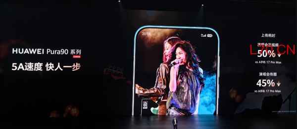 官方公布的数据显示,同一场演唱会,网络挤成粥的时候,华为Pura 90系列发视频,比iPhone 17 Pro Max上传耗时直接缩短50%,传图也快了45%。