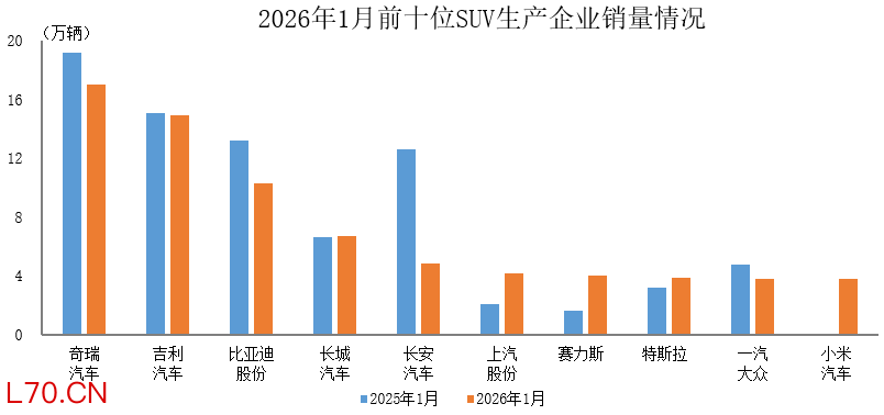 中汽协:1月销量排名前十位的SUV生产企业共销售73.4万辆中汽协:1月销量排名前十位的SUV生产企业共销售73.4万辆