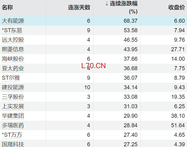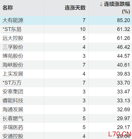 38只个股连续上涨5个交易日及以上38只个股连续上涨5个交易日及以上