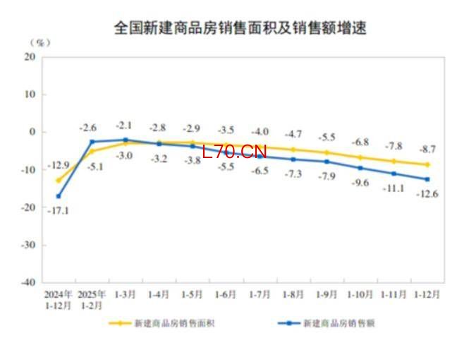 国家统计局数据显示,2025年全国新建商品房销售面积8.81亿平方米,同比下降8.7%;销售额8.39万亿元,同比下降12.6%;房地产开发投资82788亿元,同比下降17.2%;年末商品房待售面积仍有76632万平方米。