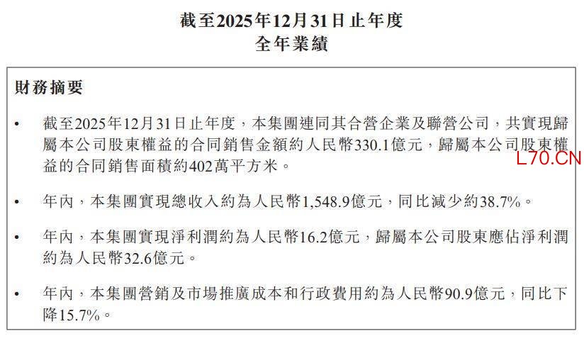 新城控股是少数仍能维持经营性现金流为正的房地产企业,不过受整体行业低迷的影响, 2025年,新城控股实现营收530.12亿元,同比下降40.44%;归母净利润为6.8亿元,同比下降9.6%。销售面积约253.58万平方米,同比下降52.94%。开发业务的萎缩幅度超过行业平均水平。