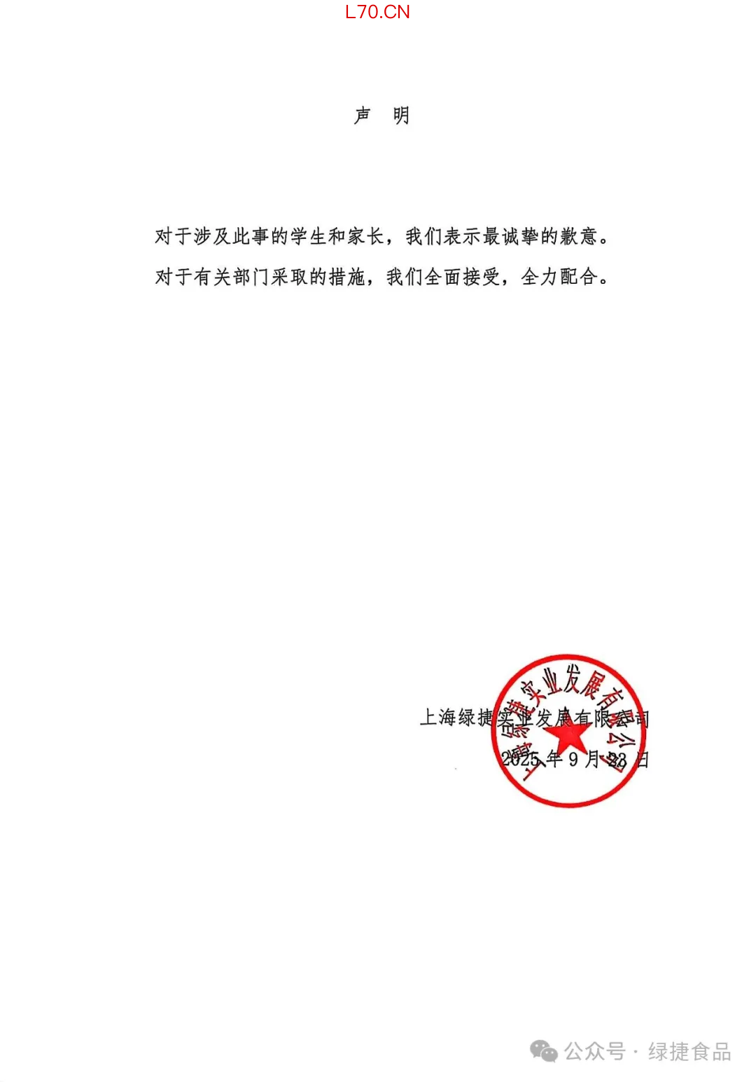 上海绿捷致歉:全面接受有关部门采取的措施,全力配合上海绿捷致歉:全面接受有关部门采取的措施,全力配合