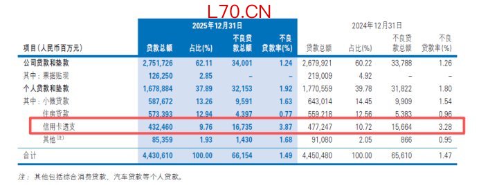 特别是信用卡业务,正成为民生银行资产质量的“新痛点”:不良贷款率从3.28%上升至3.87%,在已披露数据的股份行中不良率居前;对应不良余额达167.35亿元,占个人不良贷款总额比重过半。