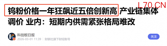 种种迹象已显示,自2025年以来,全球钨价正经历一场前所未有的上涨浪潮!尤其是进入到2026年以来,钨价更是直接进入到“跳涨模式”。