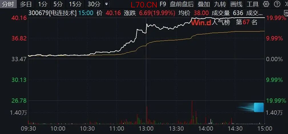 芯片股同样掀涨停潮,香农芯创、芯碁微装、锴威特等多股午后20%涨停,华懋科技、快克智能等临近收盘强势封板,平治信息、铭普光磁、深南电路等近70股涨停或涨超10%。